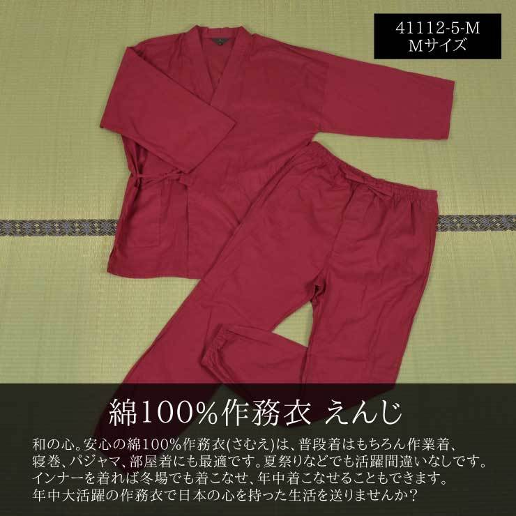 - 綿100% 薄地 作務衣 さむえ えんじ Mサイズ★41112-5-M★新品 紳士 男性 おしゃれ パジャマ 普段着 和食 居酒屋 整体 陶芸 書道 和装 Z1