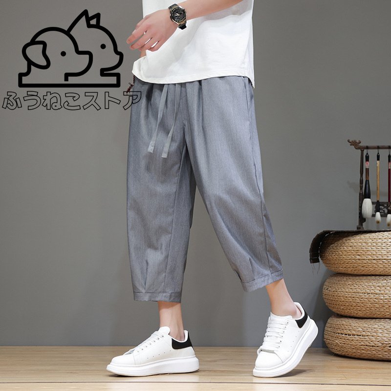 - 夏物クロップドパンツ夏涼しい新品 メンズ カジュアルパンツ ボトムス ショートパンツ ハーレムパンツ グレー L