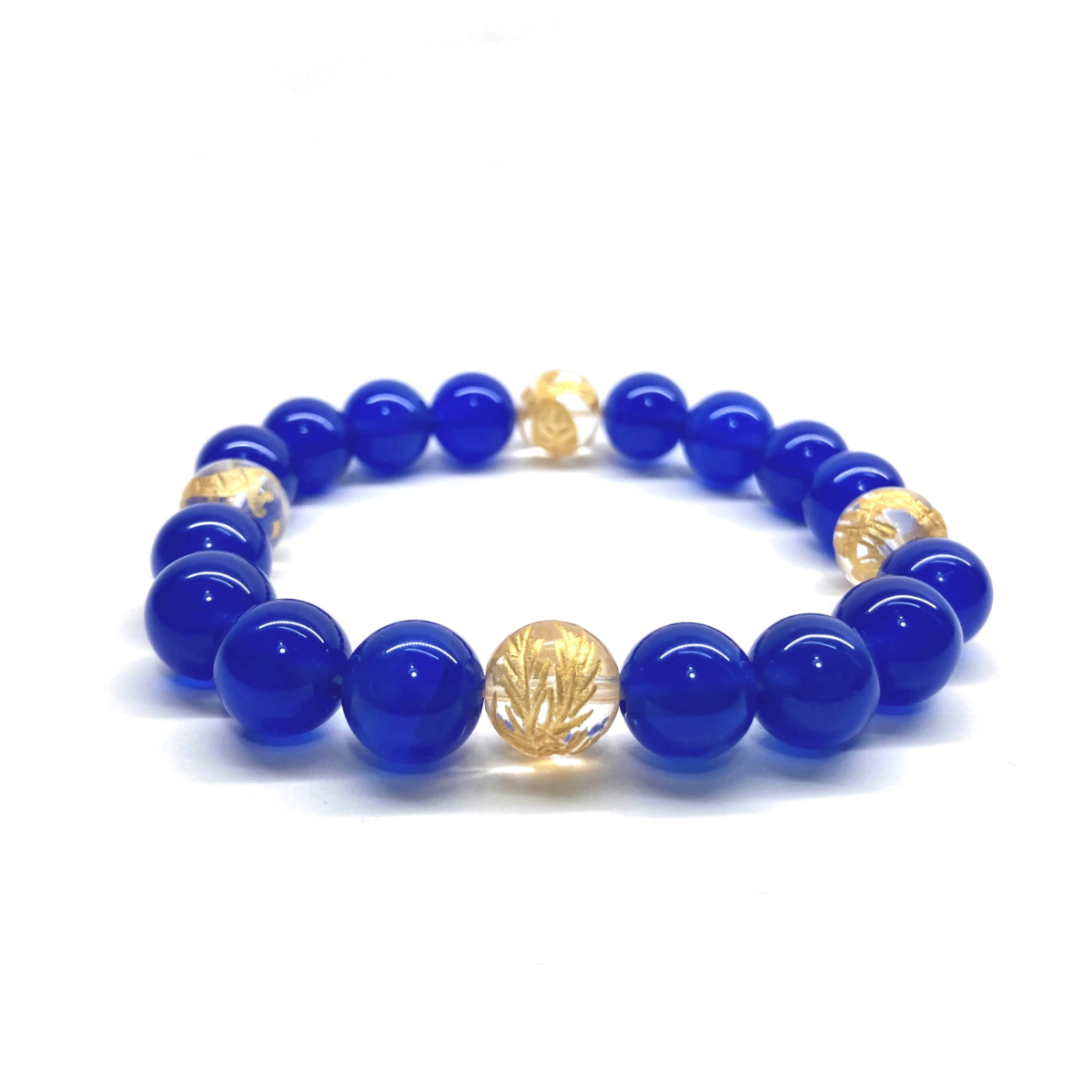 > 10mm 四神獣金彫水晶×青瑪瑙 パワーストーン ブレスレット天然石 運気上昇 開運 金運 恋愛運 お守り 青龍 白虎 玄武 朱雀 シンプル