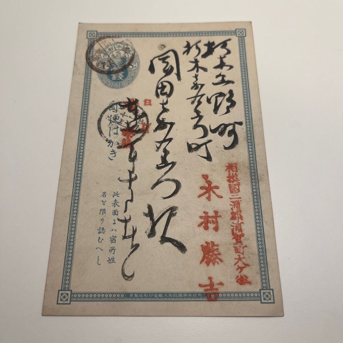 - 明治27年 古文書 エンタイヤ 明治時代 青 一銭 小判はがき 送料110円『D-1』