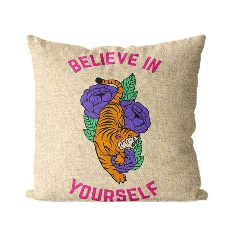- 虎 タイガー 白 ベージュ クッションカバー 45×45cm おしゃれ 派手 インテリア 正方形 麻生地 リネン 1枚【color 12】
