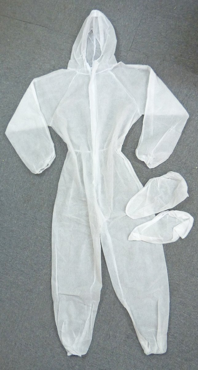 - ☆保管品!メーカー不明 不織布二層タイプ防護服 つなぎ防護服 男女兼用 フリーサイズ ホワイト【LC-0010-001】49枚セット☆