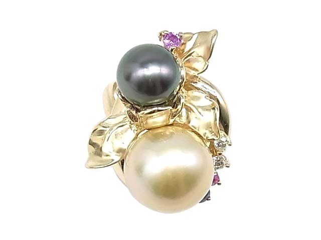> g19787 K18YG パール12.6mm/8.9mm S0.17ct T0.09ct D0.11ct リング USED 美品 19.8g #8