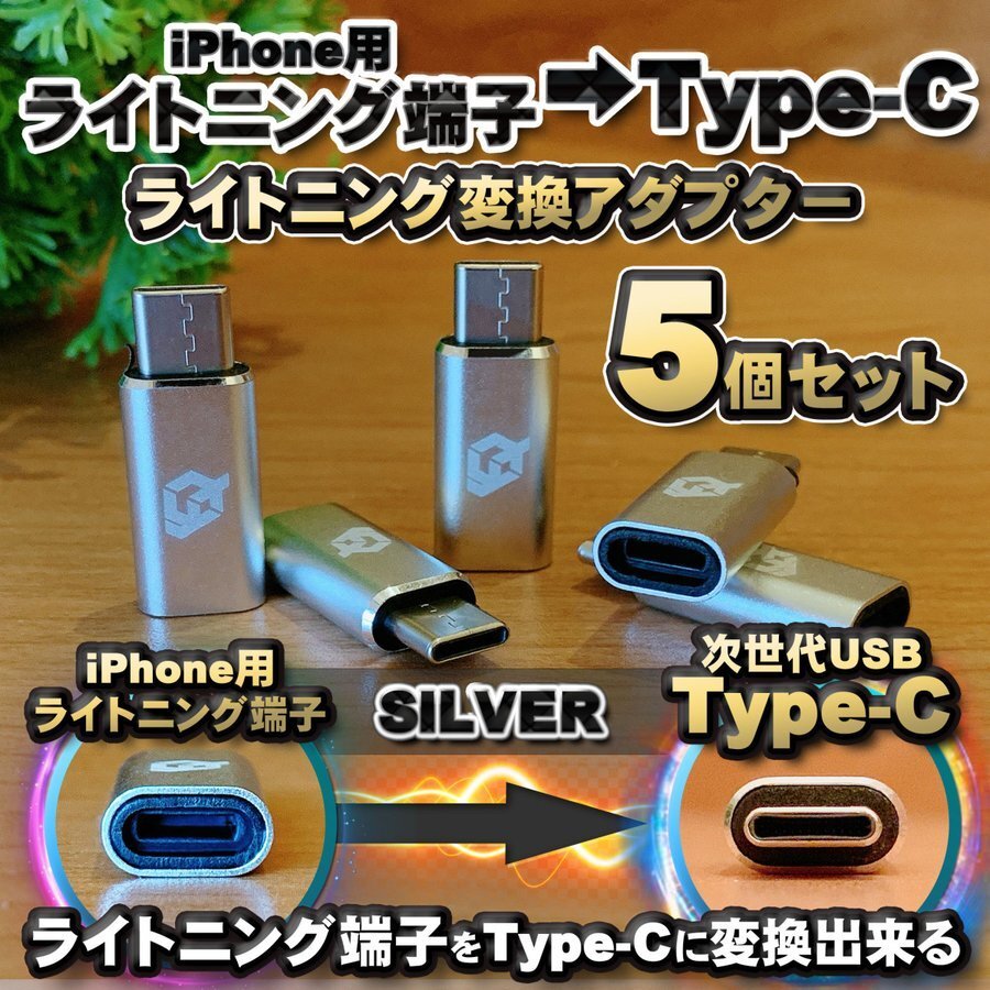 - iPhone用 ライトニングケーブル → USB Type C 端子 に変換する アダプター x5 【シルバー】