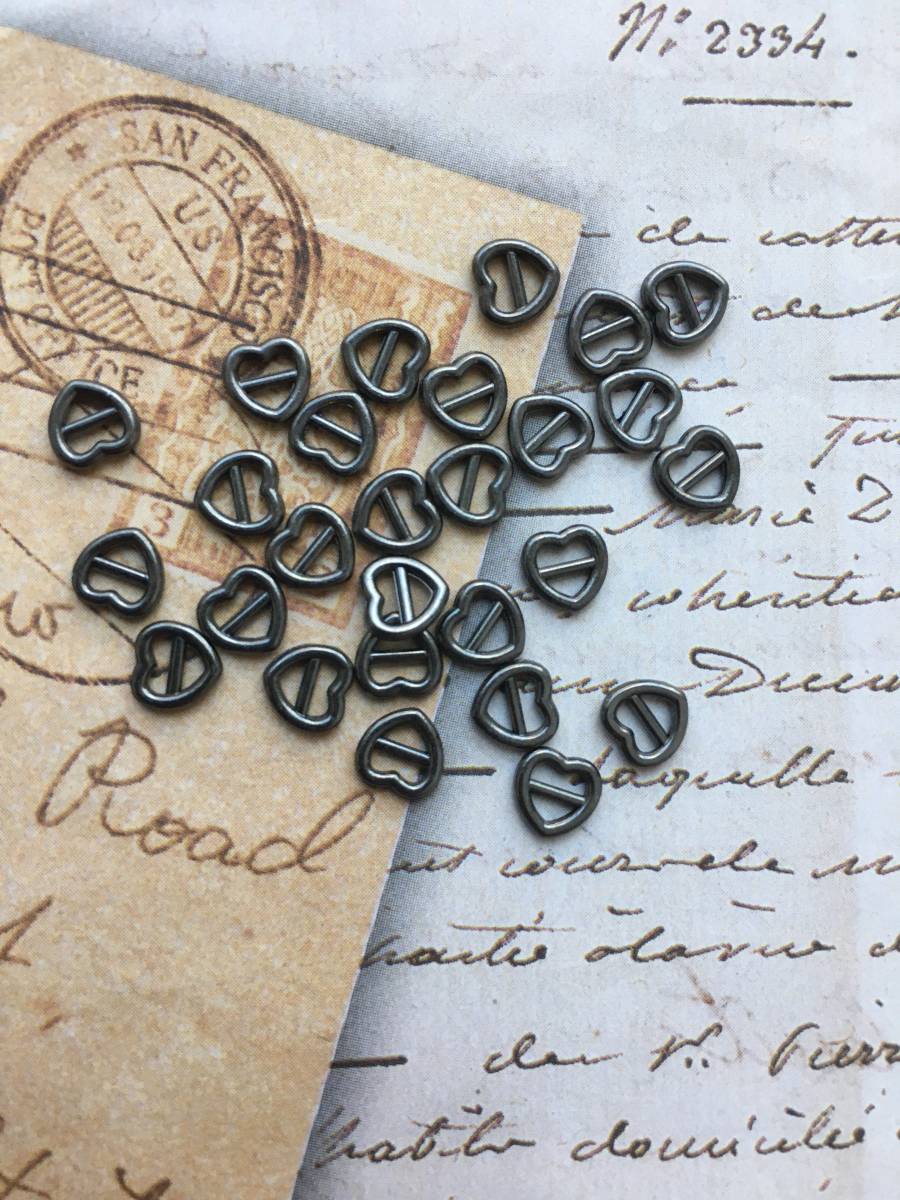 - ハート 黒×銀色バックル 約5mm 20個 極小 小さめ ハンドメイド材料 デコ材料 ドール用 人形用 ミニチュア用 217