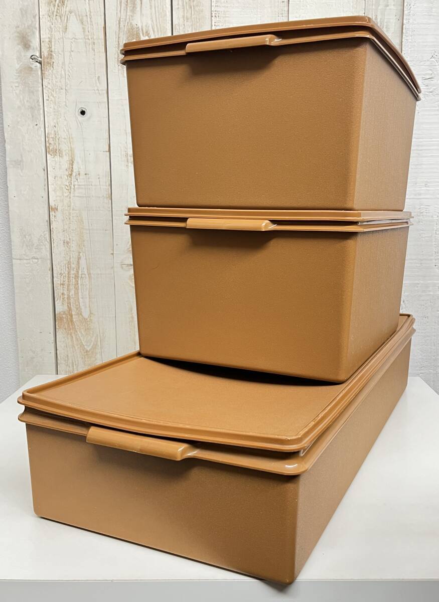 - クローゼット 収納 *TUPPERWARE タッパーウェア *ディープスーパーケース ロング 3点 セット ブラウン *衣類 衣料 小物 整理整頓 衣替え