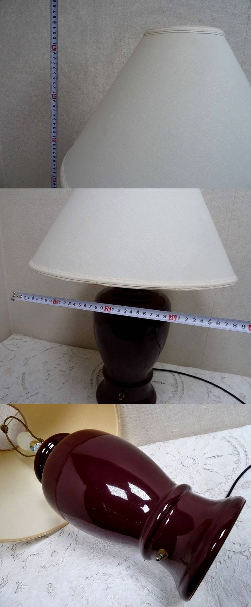 > (RM)ホテル仕様♪ナイトスタンド①テーブルスタンド 照明 プラム パープル 陶器 赤紫 UL CONCORD ヴィンテージ調 レトロ ランプ ライト