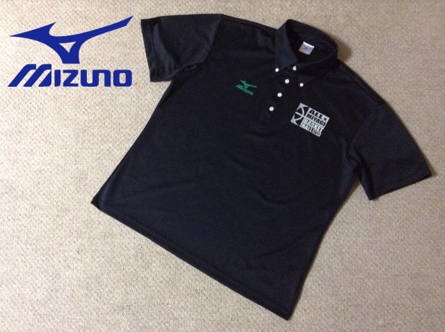 - ★中古★ミズノ メンズ ボタンダウン 半袖ポロシャツ ワンポイントロゴ 黒 ブラック 吸汗速乾 mizuno