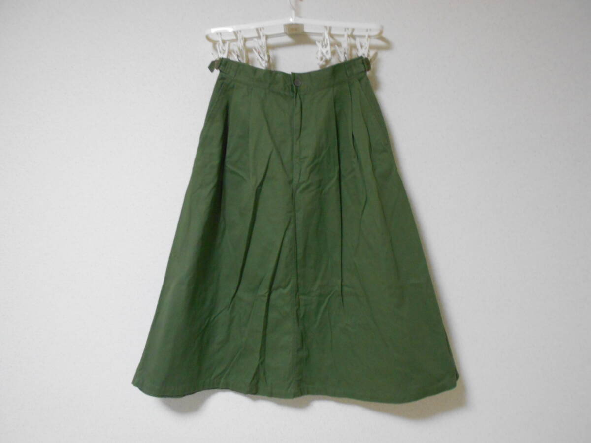 > AMERICAN HOLICアメリカンホリック☆カーキグリーンくすみ緑のフレアロングスカート☆楽ちん♪ウエストゴム&調節ベルト付き☆Lsize☆美品