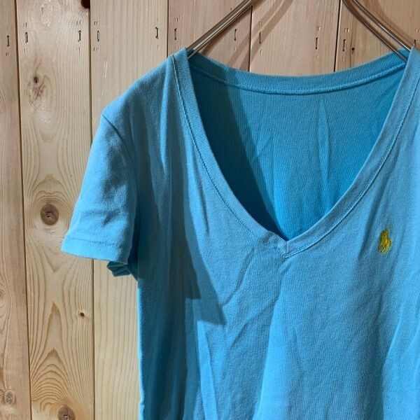 - [KWT2924] Vネック半袖Tシャツ レディース ライトブルー ポス