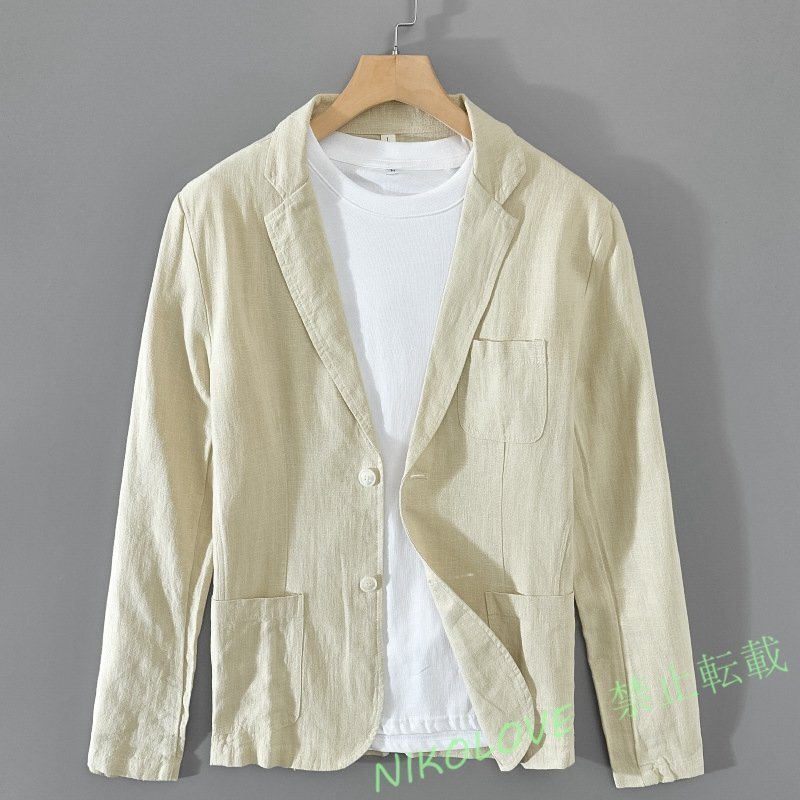 - 新品 テーラード メンズ リネンジャケット 無地 綿麻 スーツブ レザー 胸ポケット 背広 薄手 春夏 サイズ選択可 あんず色 LF765