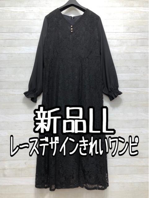 - 新品☆LL黒系エレガントなレース切替ワンピース♪フォーマル・パーティ☆f840