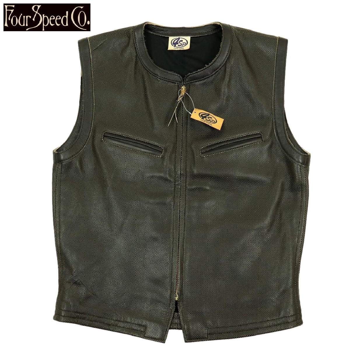 - 【Y99】【未使用品】FourSpeed フォースピード レザーベスト レザージャケット バイクウエア パンチングレザー 牛革 一部難有 サイズL