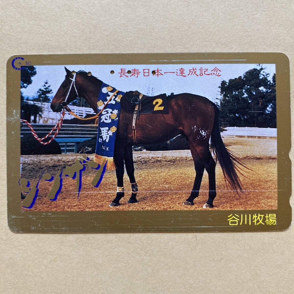 - 【使用済】 競馬テレカ シンザン 長寿日本一達成記念