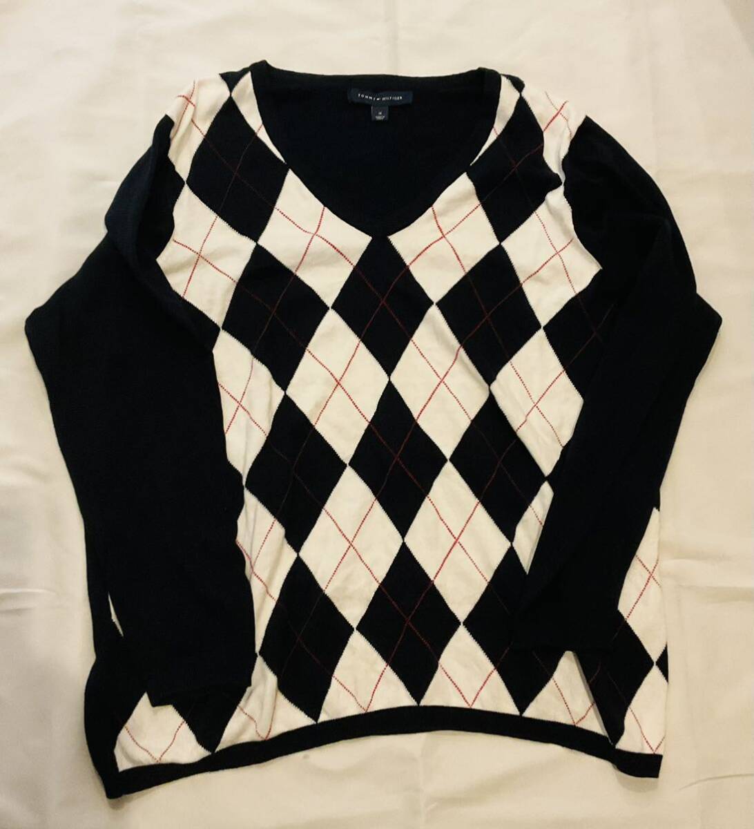 - トミーヒルフィガー Tommy ニット セーター 長袖 Vネック ノバチェック トップス Ⅸサイズ
