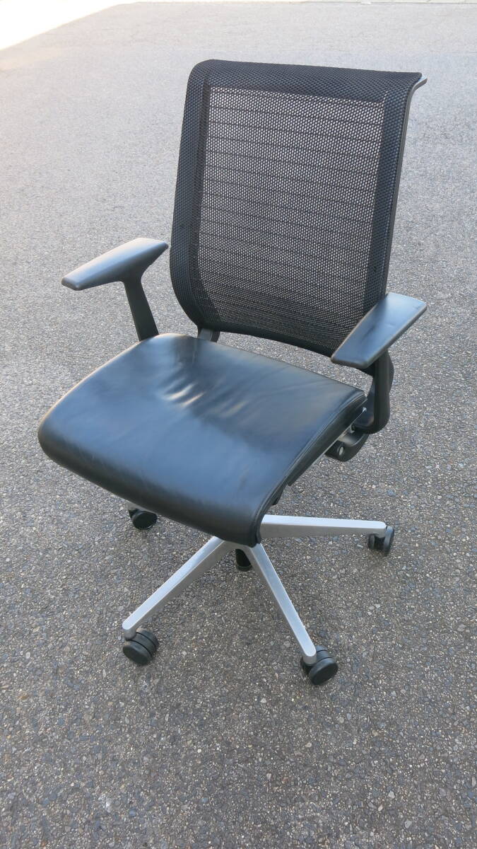 - 中古 スチールケース Steelcase シンクチェア Think chair 黒 革 メッシュ 肘付 傷等有り エルゴノミック オフィスチェア 1