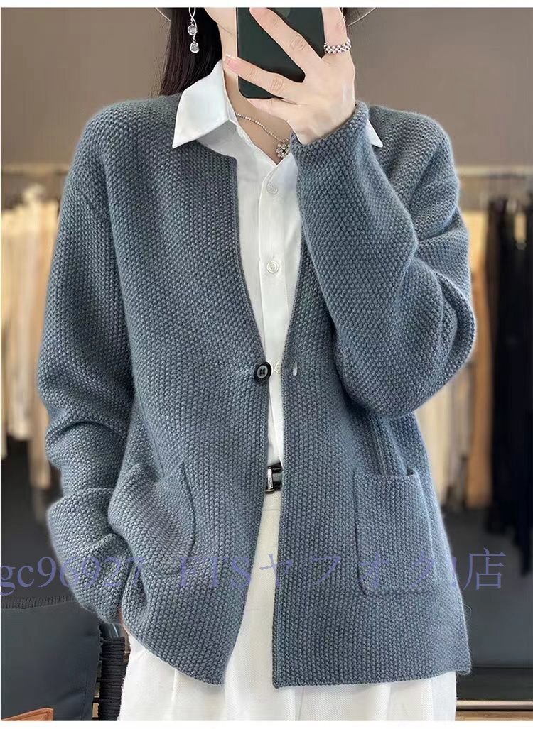 - A6402☆新品秋冬 上品 ニット カーディガン Vネック 厚地 暖かい ミンクカシミヤ混 大人 アウター ニットセーター コート 灰
