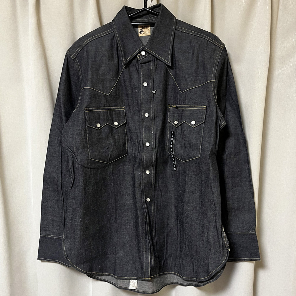 - レア 新品 廃盤 M Lee リー 50s ビンテージ復刻 ロデオタグ デニムシャツ ウエスタンシャツ 2455 15SHORT マチ vintageデッドストック 101Z