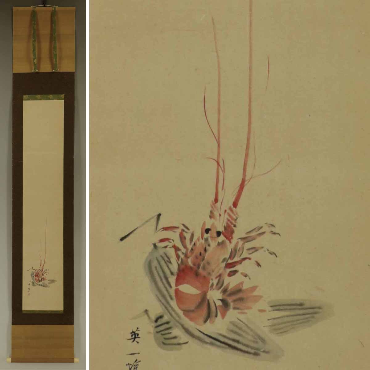 - 【模写】英一蝶【海老図】◆紙本◆合箱◆掛軸 s01070