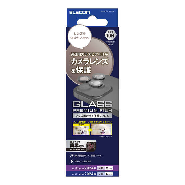 > iPhone16Pro/16ProMax用カメラレンズ保護ガラスフィルム 端末のカメラレンズを傷や汚れから守る: PM-A24CFLLGBK