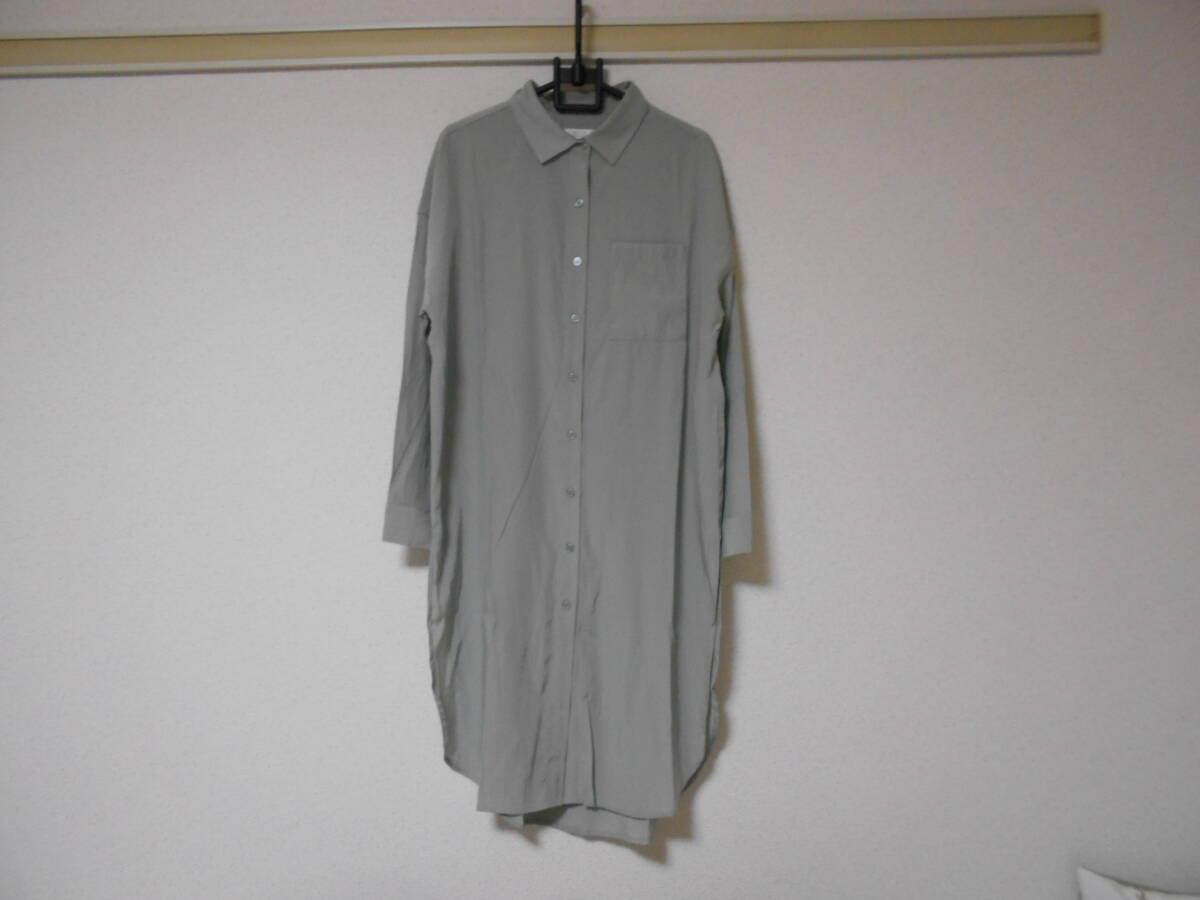 > LOWRYS FARMローリーズファーム☆アダストリア☆グリーングレーの長袖シャツチュニック☆ワンピース☆女性らしい♪さらさら光沢素材☆Fsize