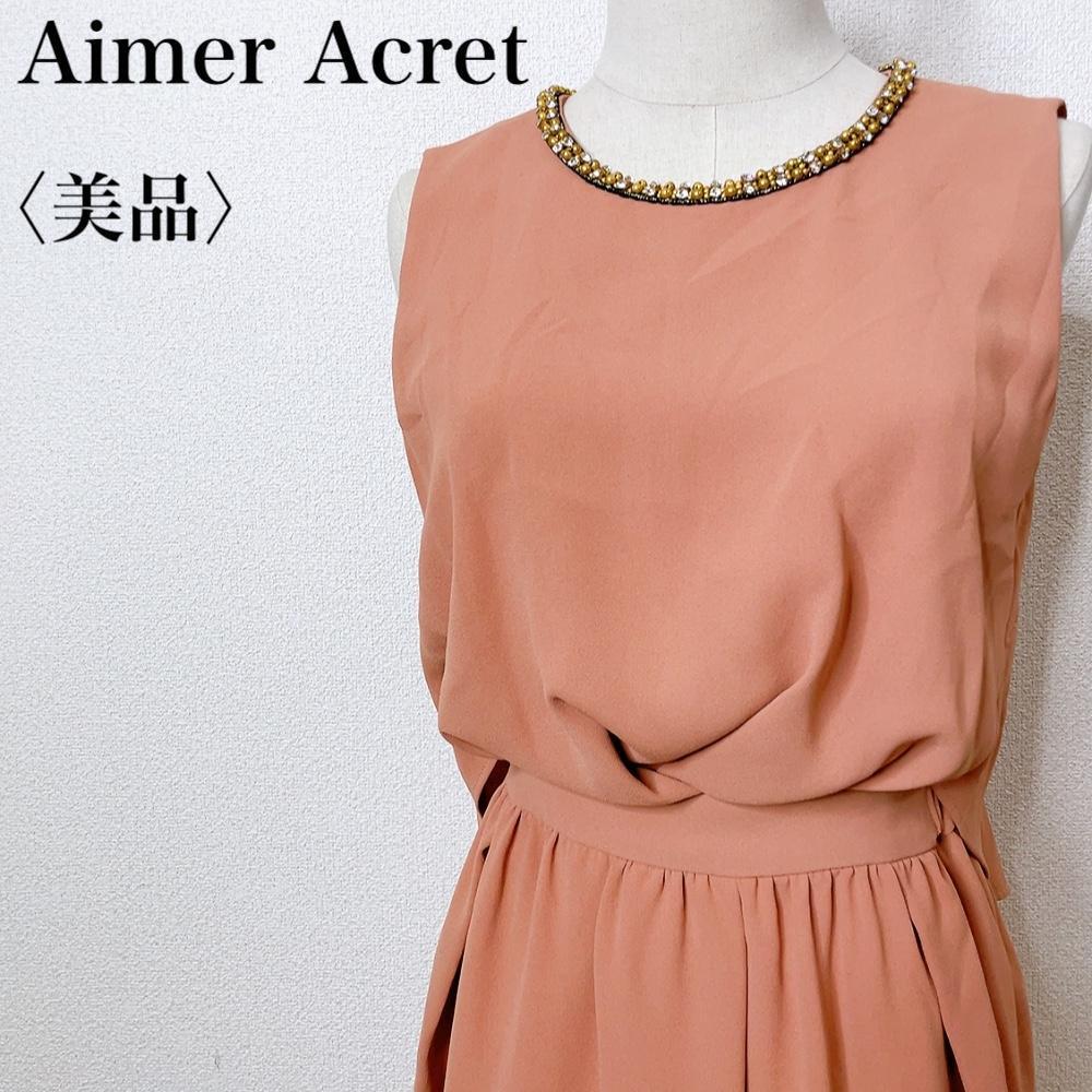- 【美品】Aimer Acret エメエクレ ドレス ビジュー Aライン ノースリーブドッキングワンピース 華やか 煌びやか お出かけ エレガント ま19