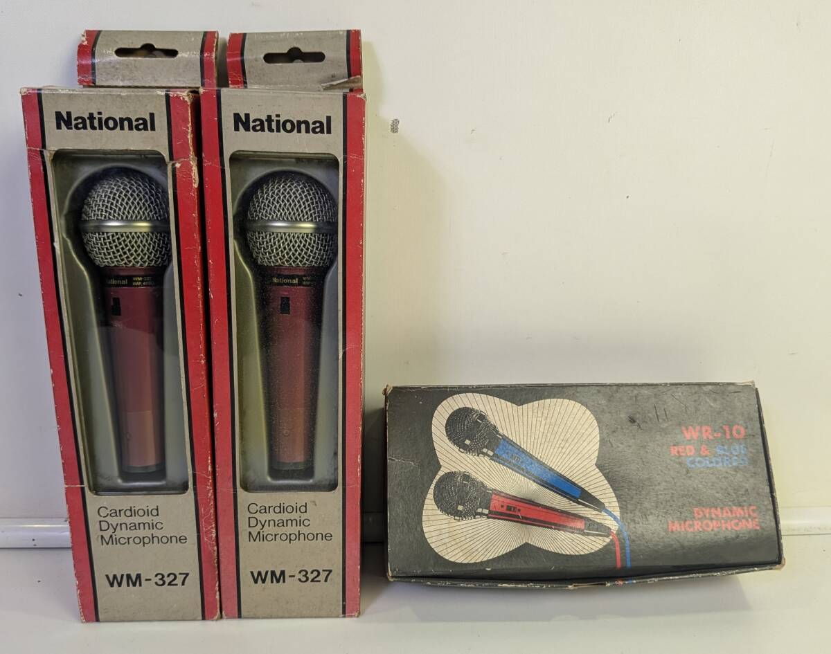 - □[昭和レトロ]National ナショナル WM-327 ダイナミックマイク 2本 / 東芝EMI WI-10 カラー RED&BLUE COLORED ダイナミックマイク2本