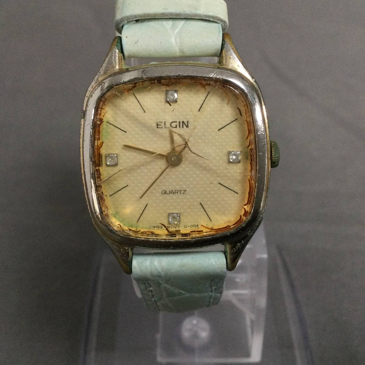 > ● 9/17 276747 ELGIN エルジン クオーツ 102067 レザーベルト スクエアフェイス レディース腕時計
