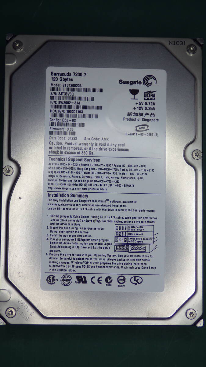 > Seagate HDD 3.5int UltraATA ST3120022A 120GB 動作確認済 送料無料(120002)