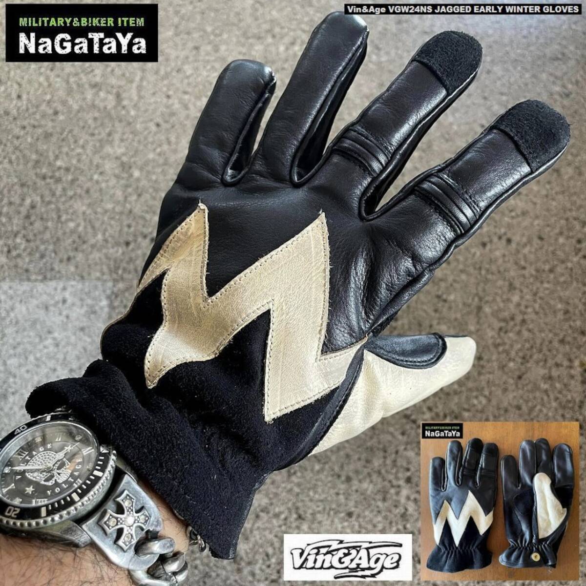 - Vin&Age VG24NS ジャジッドデザイン アーリーウインター対応 牛革×アクリルボア付 バイカーグローブ ブラック×アイボリー XLサイズ