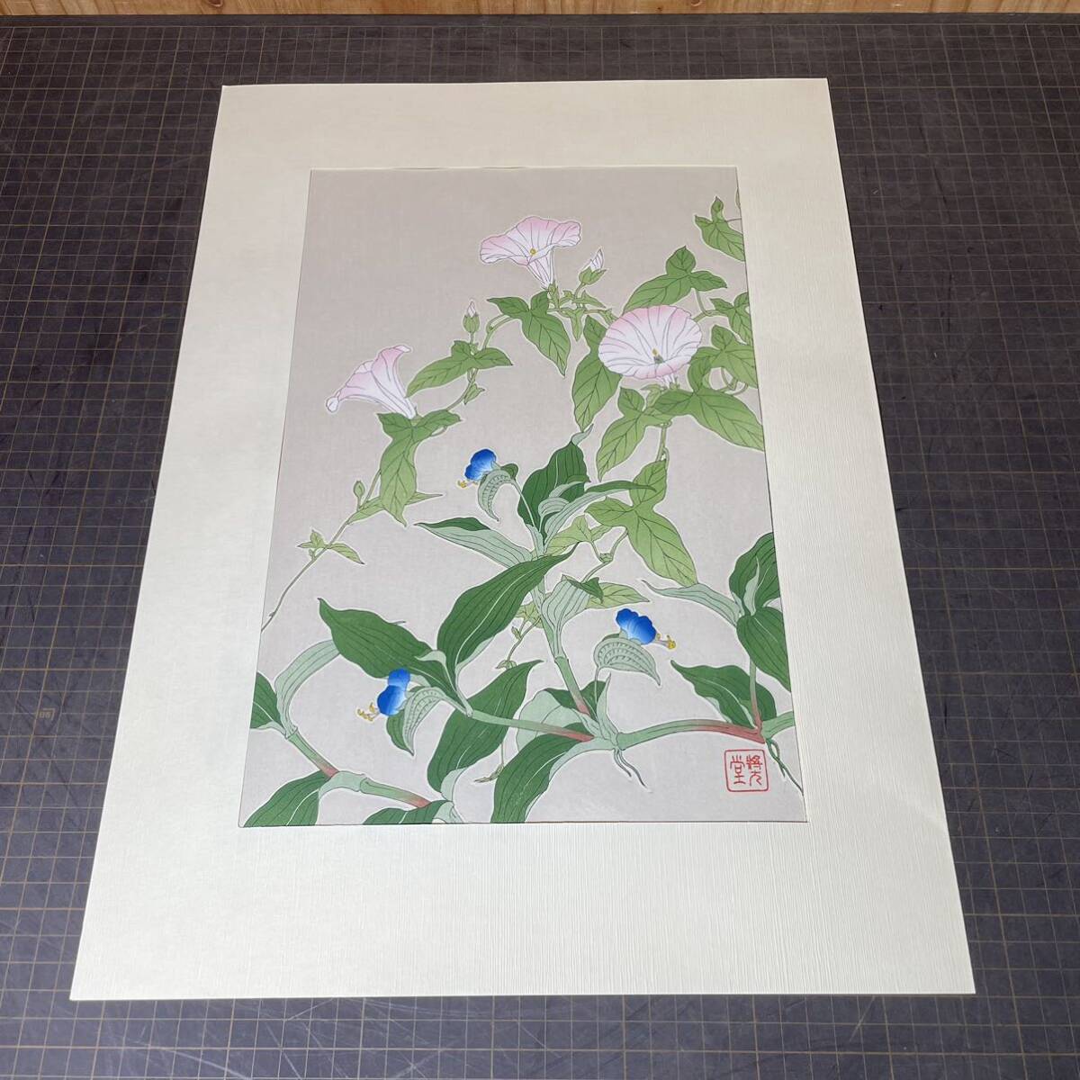 - 【12889】河原崎奨堂 昼顔とつゆくさ 露草 絵画 額なし 植物 草花 上品 おしゃれ 壁掛け インテリア 和風 芸艸堂 真作 花 かわいい 現状品