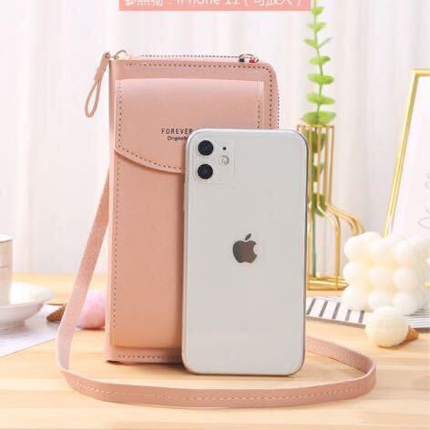 - 収納抜群財布 スマホ ショルダー バッグ ポーチ ストラップ付き ミニバッグ 小銭入れ 便利 普段用 ピンク 2個セット 在庫処分