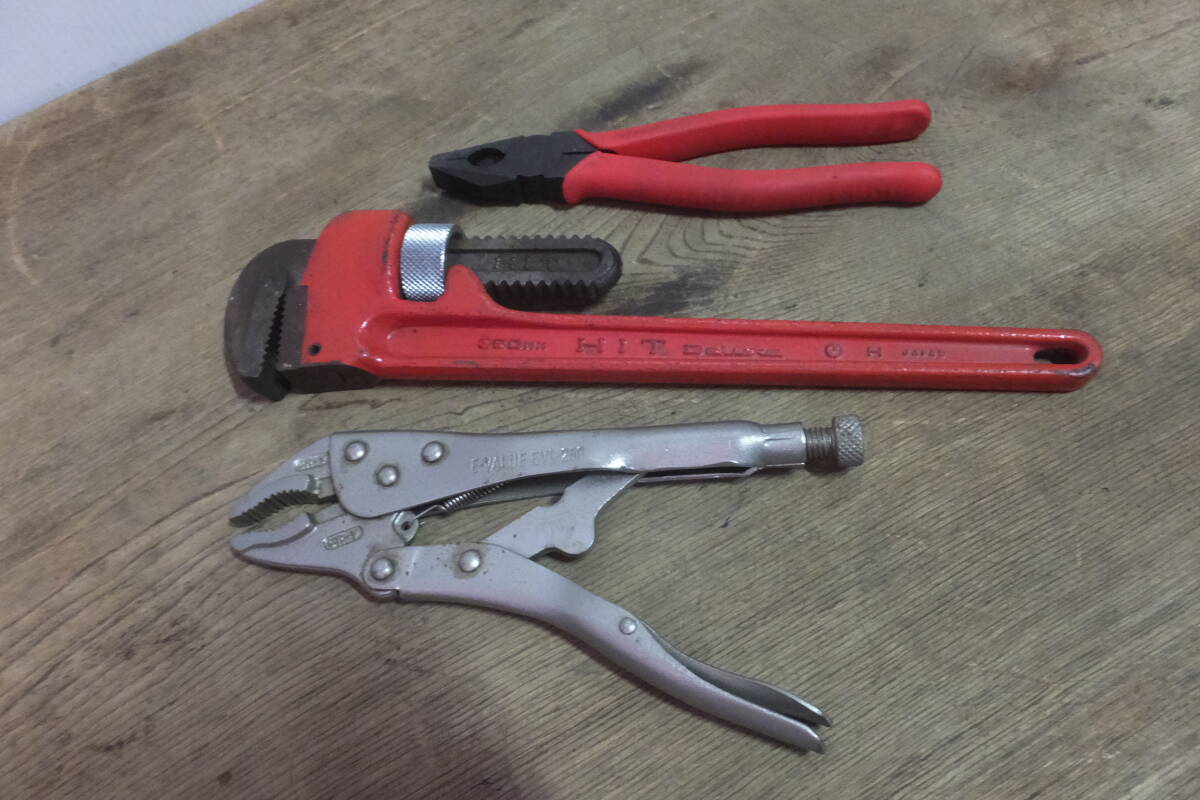 > ★ こ-223 大工道具 3個 中古 ペンチ HIT パイプレンチ 350mm ロッキングプライヤー EVL-250 ばら売りNG 最大)長さ33cm 総重量2.2kg