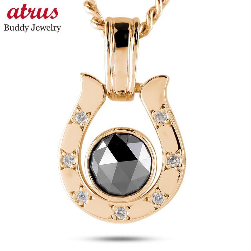 - 喜平 トップ 18金 ネックレス ダイヤモンド メンズ ブラックダイヤモンド 大粒 馬蹄 ピンクゴールドk18 シンプル 蹄鉄
