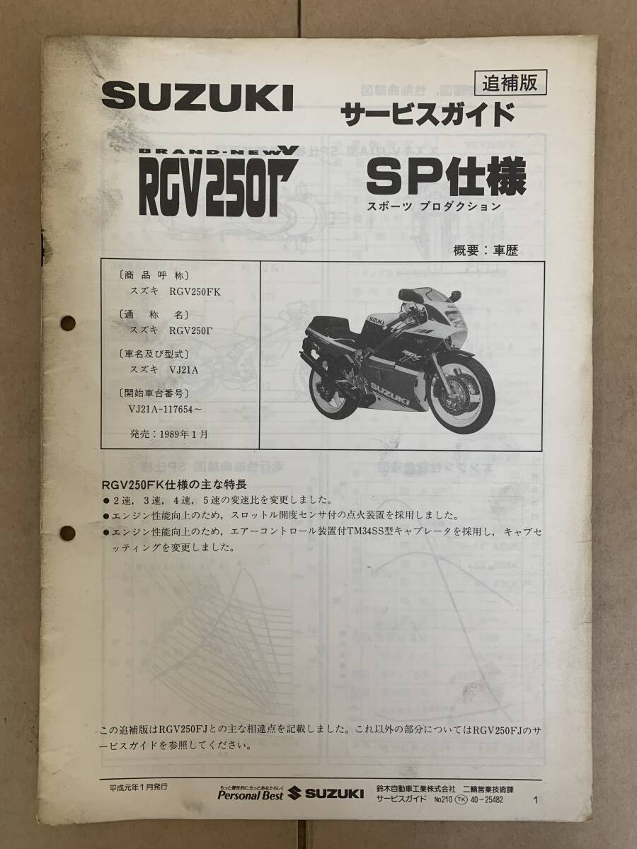 > (729) SUZUKI スズキ RGV250Γ SP仕様 RGV250FK VJ21A 追補版 補足 サービスマニュアル 整備書
