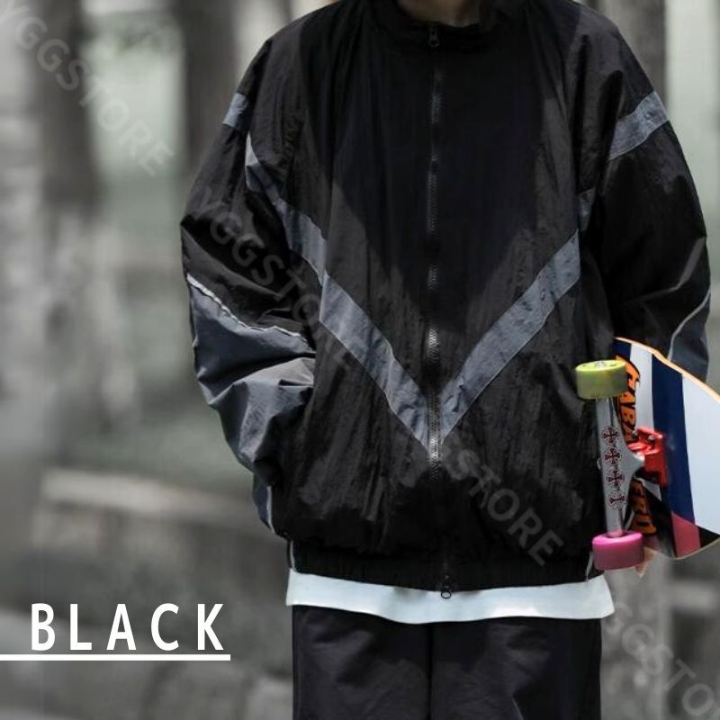 - トレーニングジャケット ブルゾン メンズ フィットネスジャケット ミリタリー ナイロン XL 黒 リフレクター オーバーサイズ ARMY IPFU