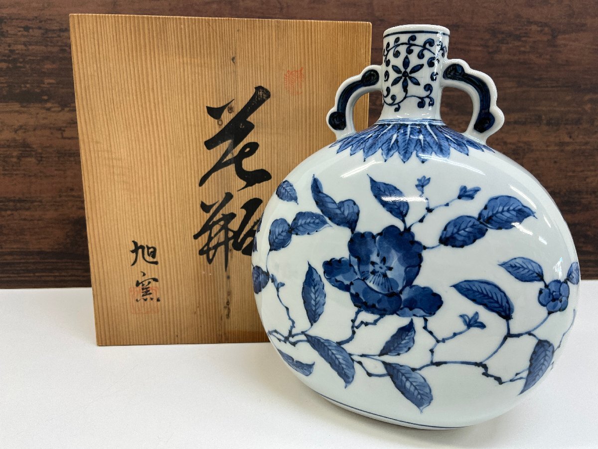 > 旭窯 造 扁壷 花瓶 共箱付 華道具 花道具 茶道具 花器 扁壺 花入 花生 一輪挿し 飾壺 飾壷