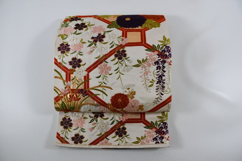 - 名古屋帯 蜀江 菊華 藤の花 帯丈430cm ★着物屋 ne-12044 桜庭呉服店