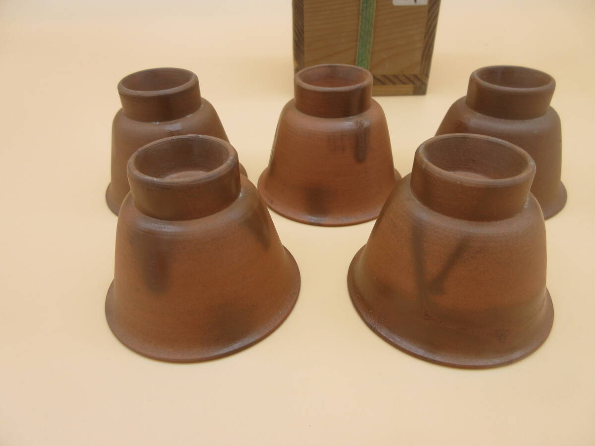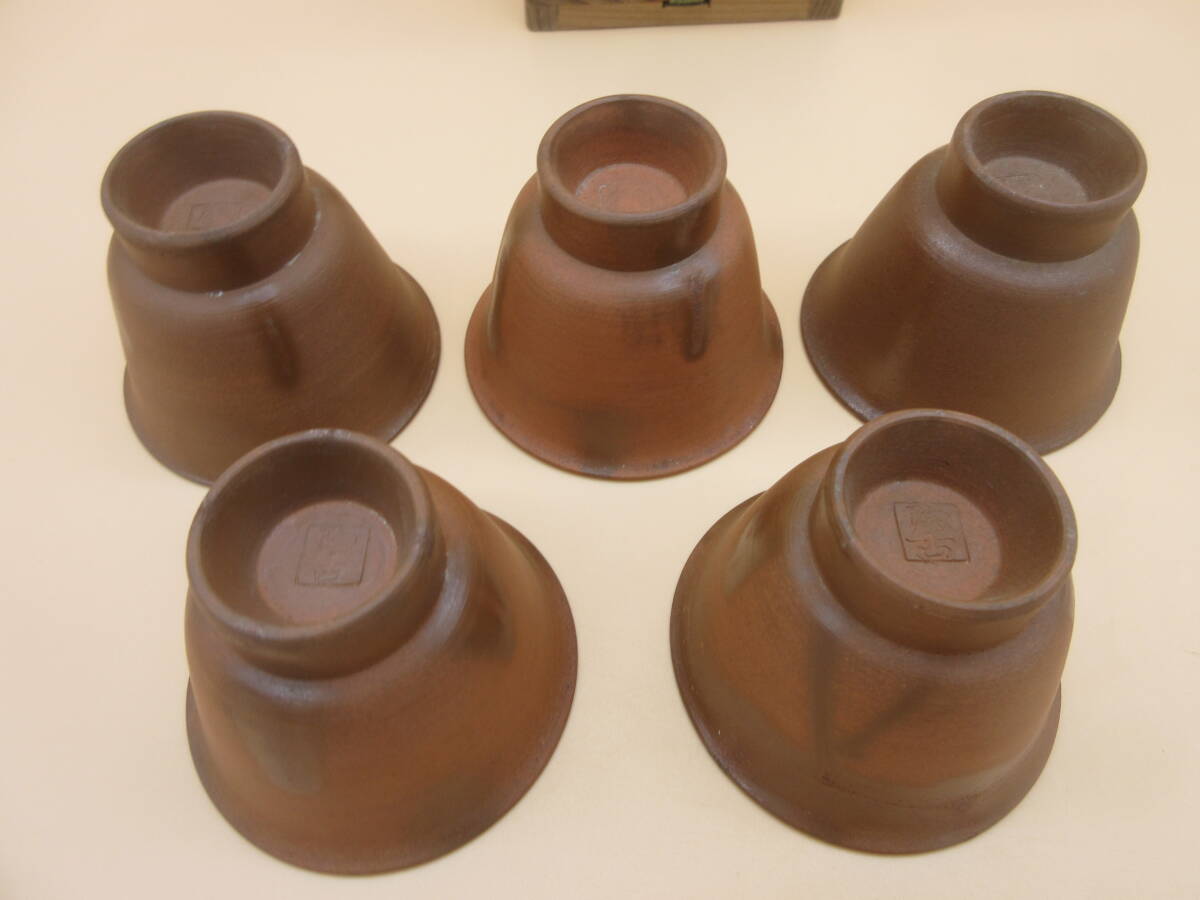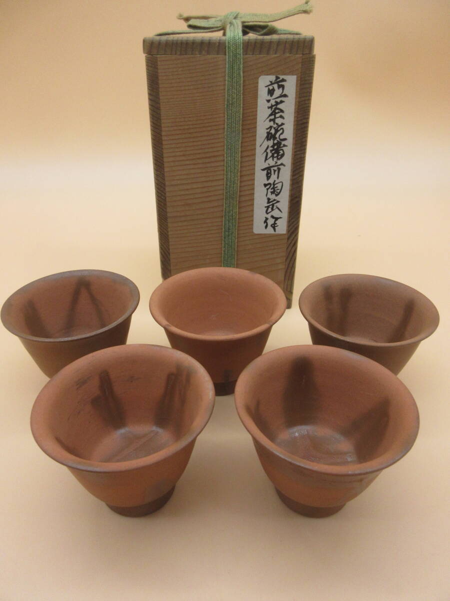 - 陶古 備前 五客 煎茶碗 共箱 茶器 茶道具