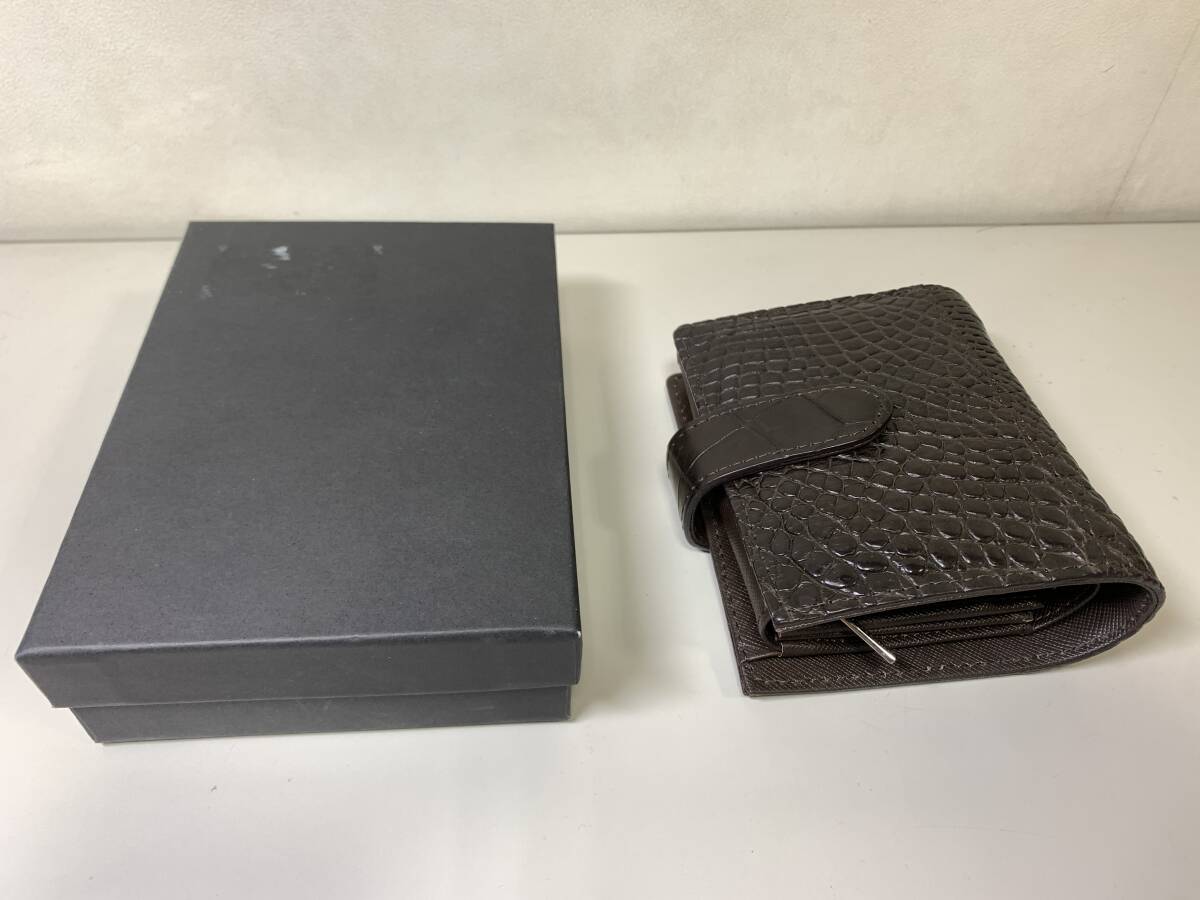 - 【質屋 尾張屋商店 東京】☆極美品☆ クロコ×牛革 本物 2つ折り財布 焦茶