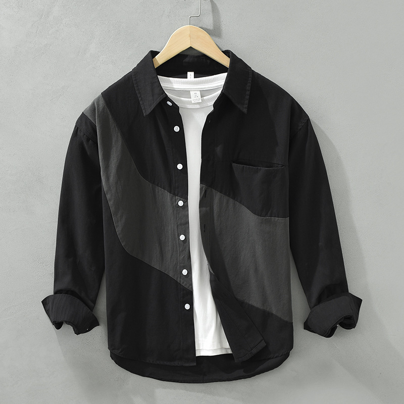 - 秋新品 / メンズシャツ 長袖シャツ カジュアルシャツ 配色 紳士用 メンズ トップス スリム メンズ お洒落 ビジネスシャツ シャツ/ブラック