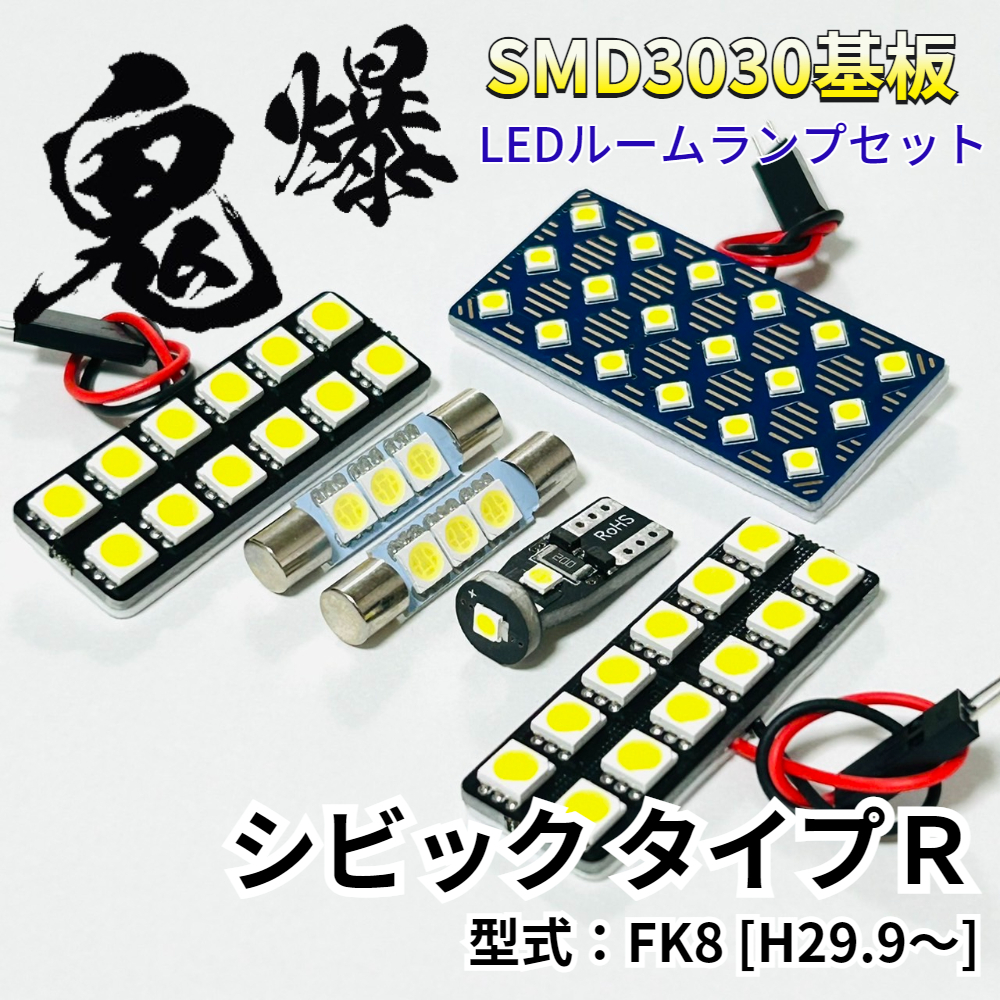 > シビック タイプR FK8 [H29.9~] ホンダ LED ルームランプ T10 鬼爆基板 SMD3030 ルーム球 室内灯 車内灯 パーツ 車検対応