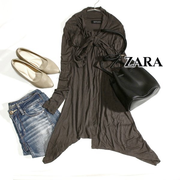 - 美品 ザラ ベーシック ZARA BASIC 綺麗め ノーボタン ボウタイリボン ストレッチ カーディガン S 春 夏 秋 24C09