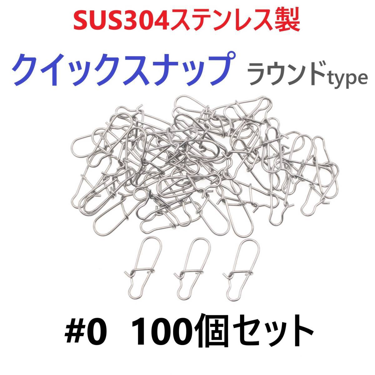 > 【送料150円】SUS304 ステンレス製 強力クイックスナップ ラウンドタイプ #0 100個セット ルアー用 防錆 スナップ