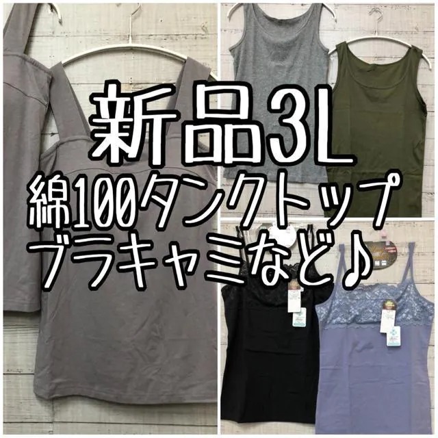- 新品☆3L♪ブラキャミ・綿タンクトップ・レースキャミのセット計6枚まとめて♪☆a917