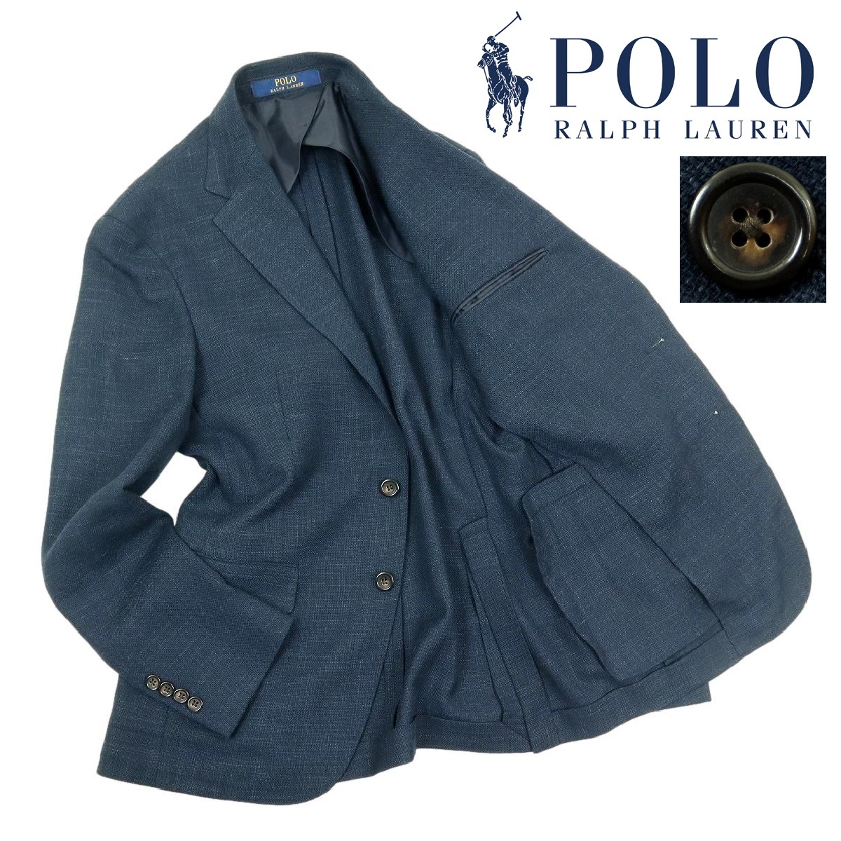 > 【S3298】【美品】POLO RALPH LAUREN ポロラルフローレン テーラードジャケット ポリエステル×毛×麻×ポリウレタン サイズ36