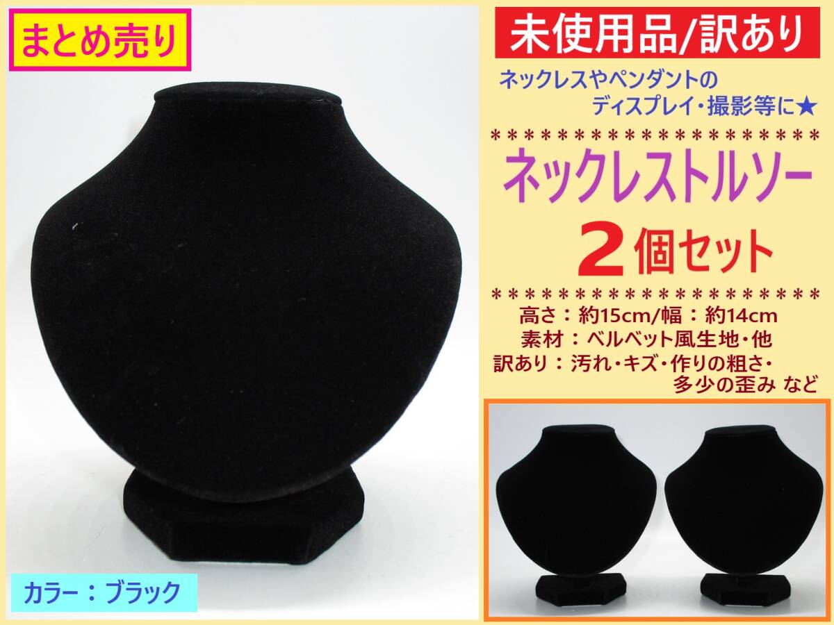 - 訳あり 未使用 ネックレス トルソー ベルベット風 ブラック 高さ15cm 2点 A 黒 ホコリ 歪み ペンダント スタンド ディスプレイ 首 マネキン