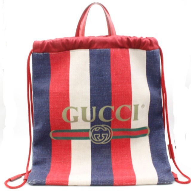 - GUCCI グッチ プリントミディアムドローストリング バッグパック 473872 527066 レッド×ホワイト×ネイビー