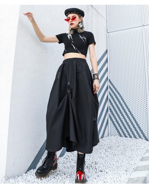 - CSN109#スカートロング丈レディース春秋服コーデ黒フォーマル結婚式きれいめ40代30代20代Aライン非対称