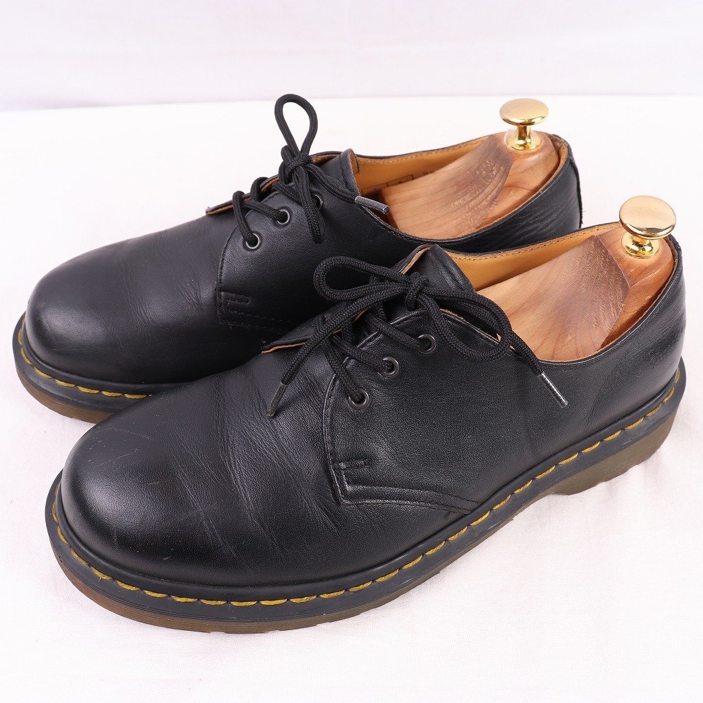- ドクターマーチン UK7/25.5cm-26.0cm/3ホール 1461 黒 ブラック ブーツ レザー メンズ レディース dr.martens 中古 古着 dm4053